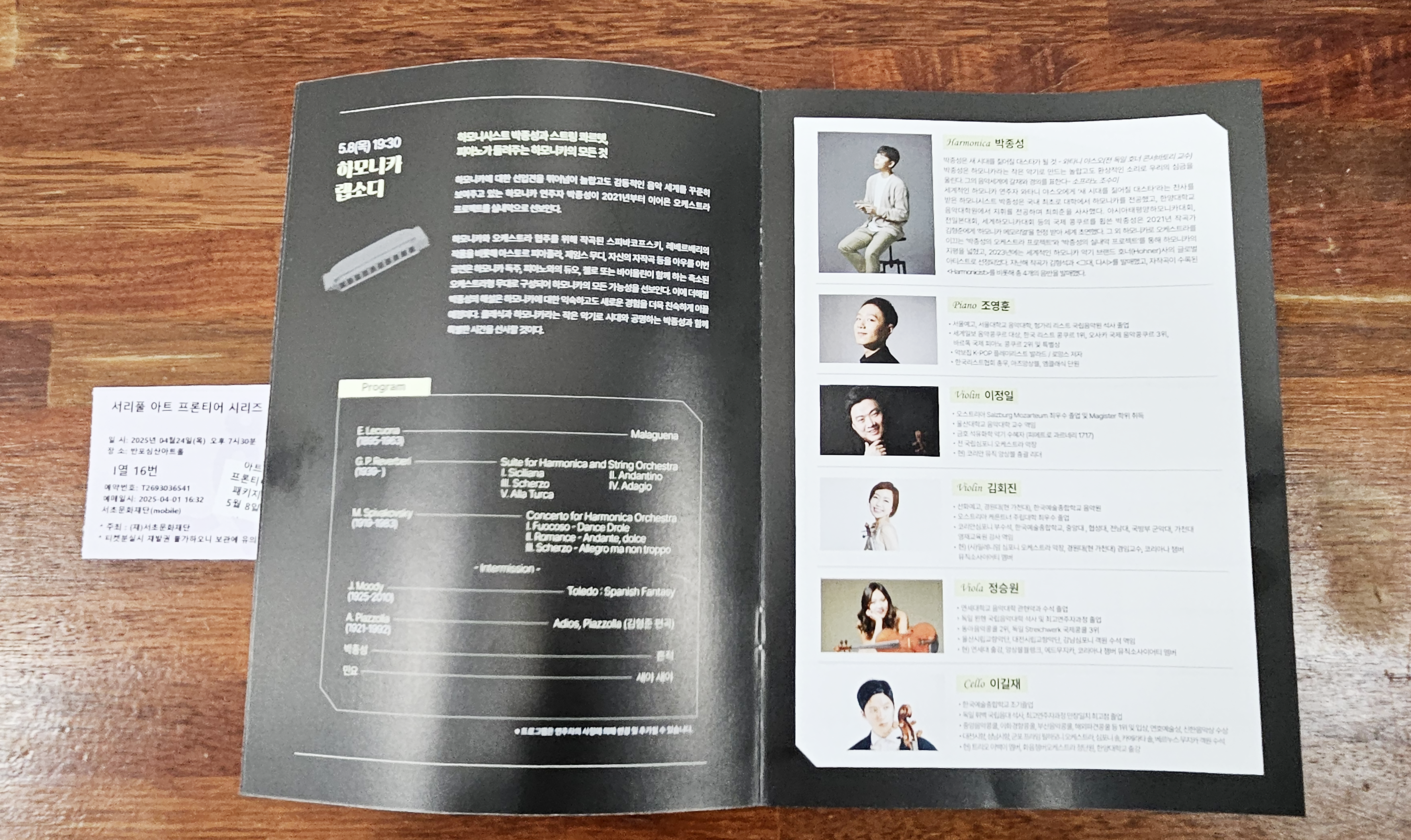 공연 중간에 하모니스트 박종성씨가 직접 나와 곡에 대한 해설을 해주었는데, 이 또한 큰 감동이었습니다. 단순히 음악을 듣는 것을 넘어서, 음악이 지닌 이야기와 배경을 함께 들으니 감상의 깊이가 달라졌습니다. 연주자들의 진심이 고스란히 전달되는 무대였습니다.