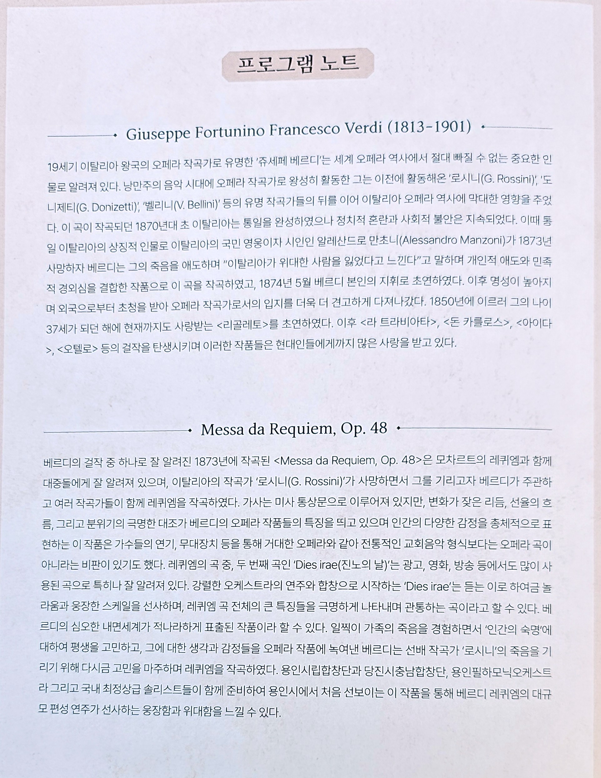 《Messa da Requiem》은 그가 가진 음악적 진심이