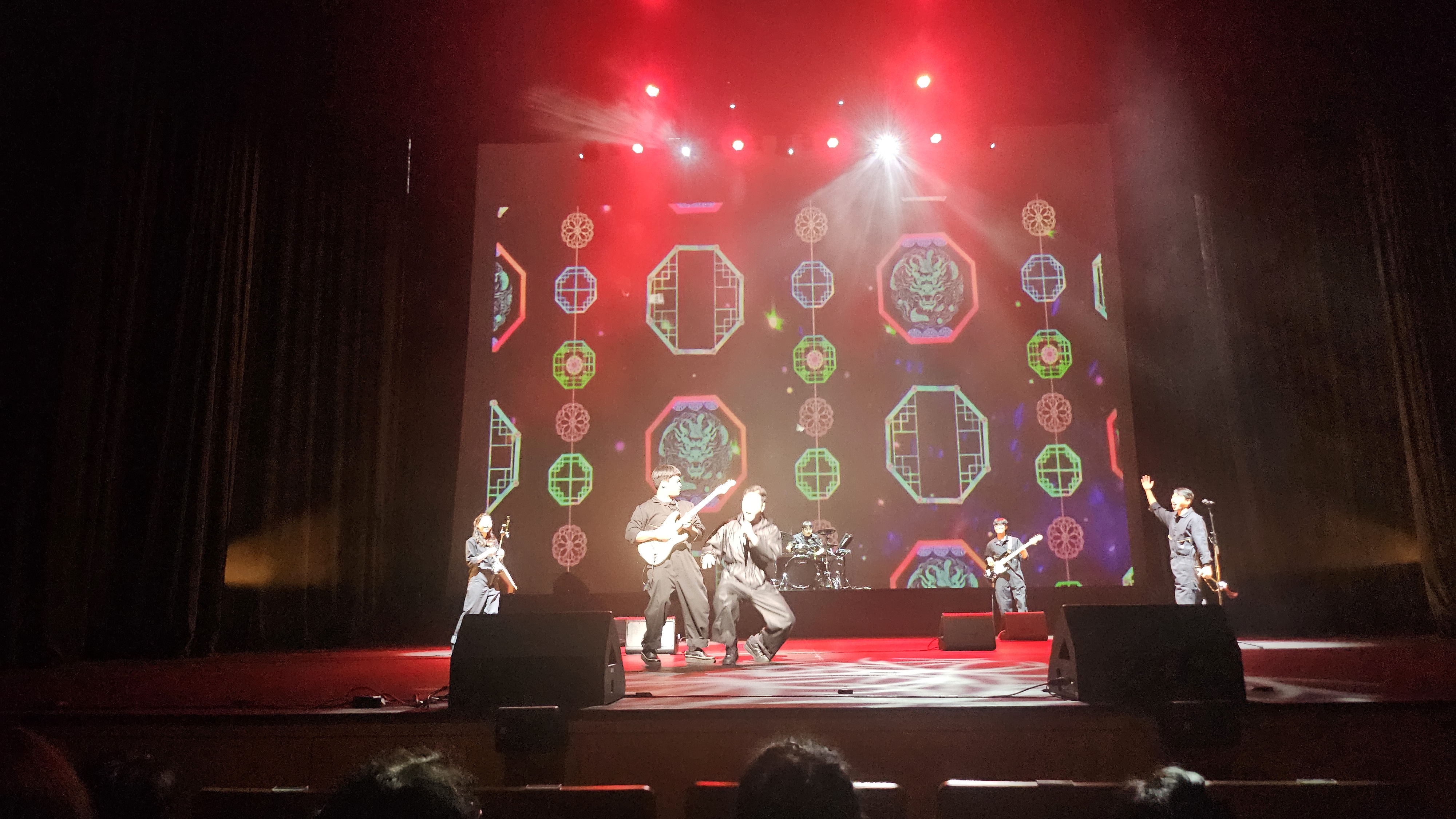 보컬, 기타, 드럼, 태평소, 해금으로 구성된 국악 밴드 칠린스가 무대에 올랐습니다.