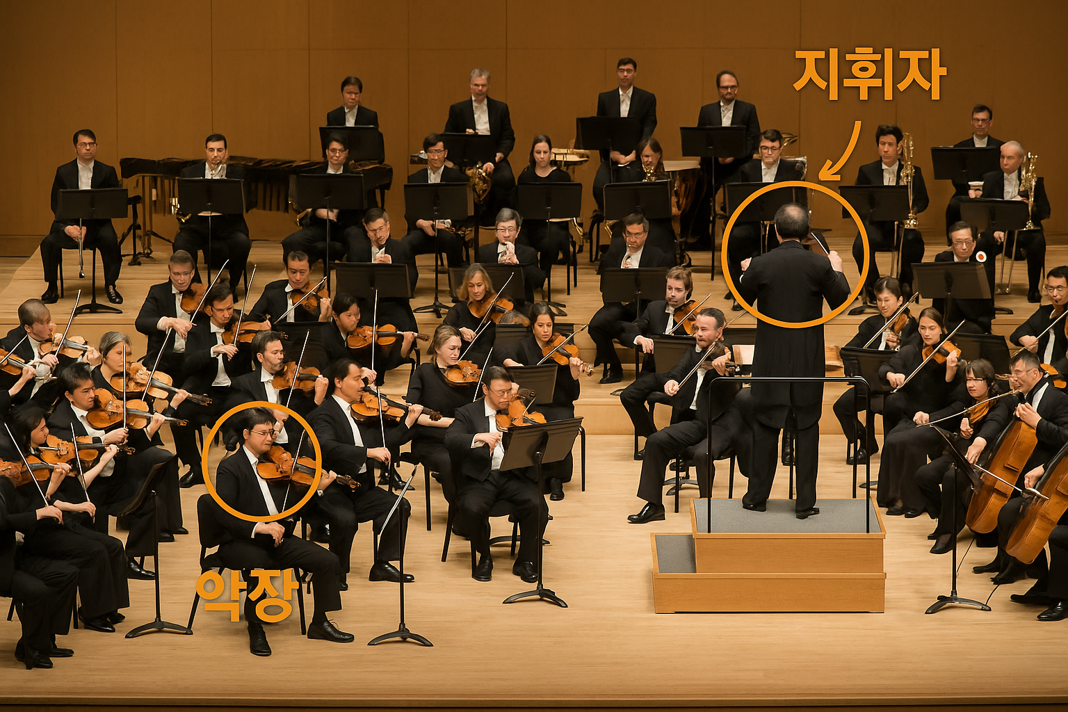 그 중심에는 지휘자와 악장(콘서트마스터) 이라는 두 리더가 있습니다.